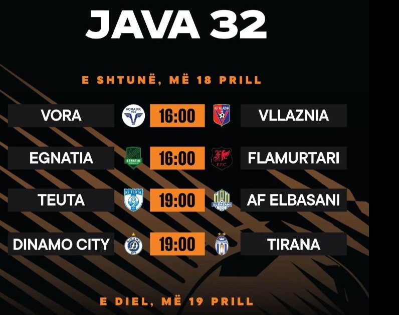 Me spostimin e derbit Dinamo-Tirana nga e premtja për të shtunën, java e 32-të e Abissnet Superiore, që transmetohet në RTSH, luhet e ndarë në 2 ditë. Janë 4 sfida interesante që do të zhvillohen ditën e shtunë.