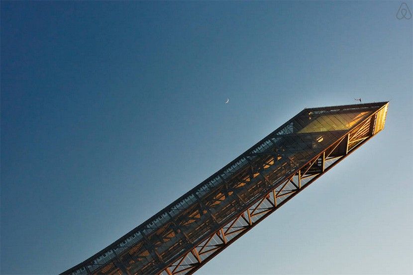 dhoma-m-euml-e-mir-euml-e-nj-euml-hoteli-vler-euml-sojeni-vet-euml-foto_hdAtëherë garuesit, pikërisht nga i njëjti vend, lart në kërcimore, skiatorët prisnin radhën e tyre. Por tani, në të njëjtin vend, në një lartësi prej rreth 60 metrash, besoni ose jo, gjendet një dhomë hoteli, transmeton Telegrafi.