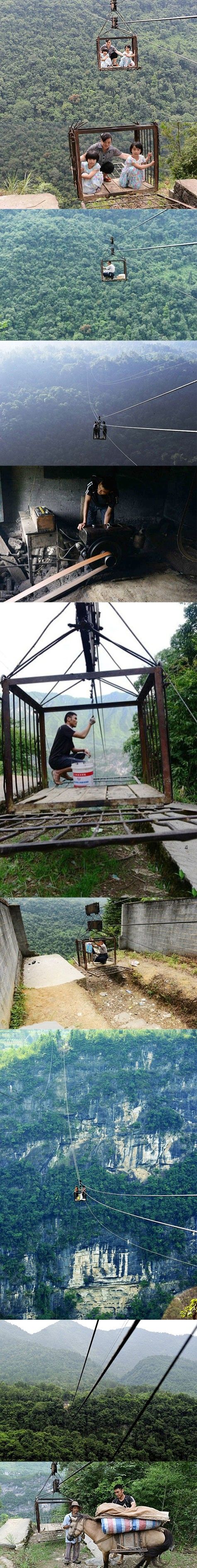 Për banorët e Yushanit, fshatit i cili ndodhet 150 kilometra nga qyteti më i afërt dhe i rrethuar nga shkëmbinjtë e pjerrët, “vetura” e tyre e improvizuar është një kabllo e quajtur “shporta e hekurit”.