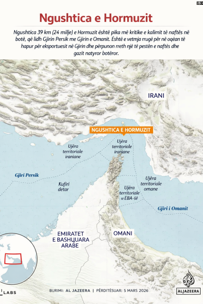 Ndërkohë, ushtria iraniane po bllokon në mënyrë efektive këtë rrugë të rëndësishme detare si kundërpërgjigje ndaj sulmeve amerikane dhe izraelite, me synimin për të goditur ekonominë botërore dhe për të ushtruar presion ndaj Uashingtonit, ndërsa çmimet e energjisë rriten ndjeshëm.