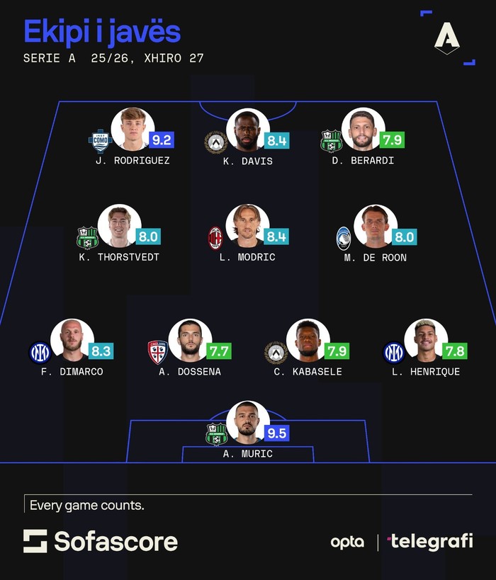SofaScore e ka publikuar formacionin e javës në Serie A, ku Aro Muric është në portë.