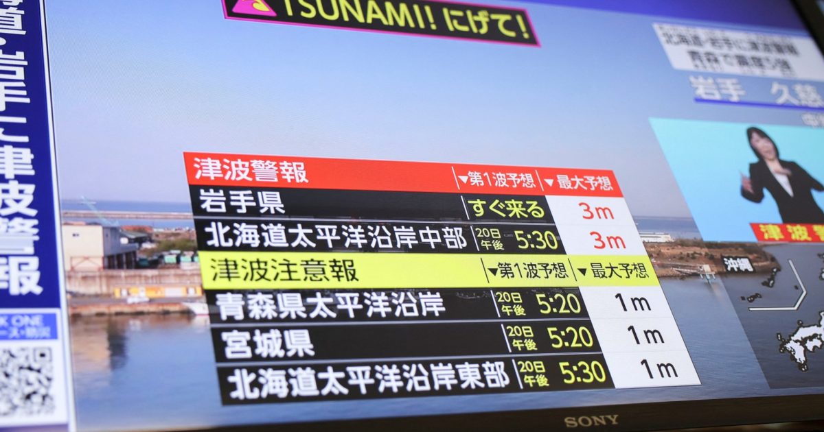 Një tërmet i fortë me magnitudë 7.5 ka goditur Japoninë veriore, duke bërë që autoritetet të lëshojnë një paralajmërim për cunami për valë deri në 3 metra (10 këmbë). “Evakuojeni menjëherë nga rajonet bregdetare dhe zonat buzë lumenjve në një vend më të sigurt, si p.sh. Pamjet drejtpërdrejt nga transmetuesi publik NHK nuk treguan shenja të menjëhershme dëmtimi në disa porte në Iwate. Ai u ndje në një zonë të gjerë, duke tronditur ndërtesat në Tokio, qindra kilometra (milje) në jug.