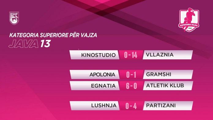 Ndeshja Lushnja – Partizani uli siparin e javës së 13-të të kampionatit të futbollit të vajzave, me të kuqet që triumfuan 0-4 në transfertë. Një fitore bindëse që i mban në garë të fortë për një vend në katërshen e “Final 4”. Në krye vijon të qëndrojë Vllaznia, që regjistroi një tjetër paraqitje dominuese, duke mposhtur me shifrat e thella 14-0 ekipin e Kinostudios. Shkodranet konfirmojnë kështu statusin e pretendentes kryesore për titull. Ndërkohë, Gramshi siguroi një fitore të rëndësishme në transfertë ndaj Apolonisë, duke triumfuar minimalisht 0-1 në një sfidë të luftuar deri në fund. Tre pikë të vlefshme arriti edhe Egnatia, që fitoi me rezultatin e pastër 6-0 ndaj Atletik Klub, duke forcuar pozitat në renditje. Java 13...