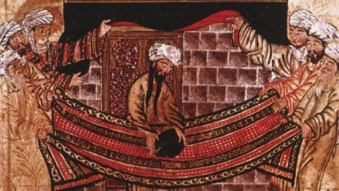 Themeluesi i Islamit, Profeti Muhamed lindi në Mekë. Në këtë paraqitje të artistit Rashid Al-Din nga shekulli i XIV-të profeti qëndron me përfaqësuesit e fiseve arabe para Qabesë. Ai mban gurin e zi të shenjtë i cili sot ndodhet në cepin lindor të Qabesë.