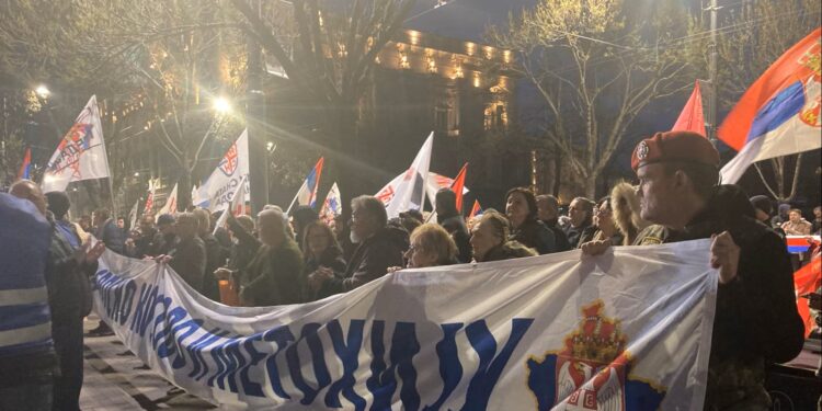 Pas fjalimeve, protestuesit marshuan drejt Ambasadës së Federatës Ruse në Beograd, për të falënderuar, sipas Obradoviq, “vëllezërit rusë”.