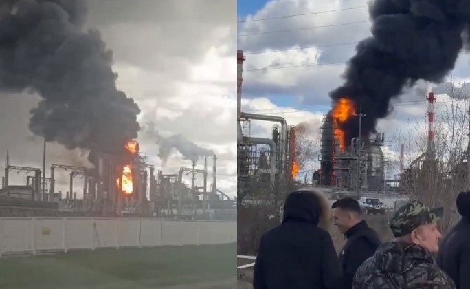 VIDEO/ Dronët ukrainas godasin rafinerinë Lukoil në Perm të Rusisë, momenti kur përfshihet nga flakët